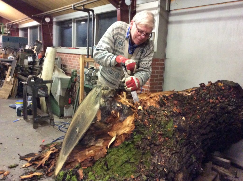 Jeg købte derefter træet, og fik efterfølgende den ide, at give det tilbage til præstegården, da det er mindst 150 år gammelt. Tanken om en skulptur opstod i efteråret, og jeg fik ideen til den abstrakte udformning. En model lavet i 1:10 blev vurderet i januar og siden præsenteret for menighedsrådet, som godkendte projektet.